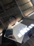 Çatlak dikiz aynası hizasında camın altlarına doğruydu. Boyutu 10 kuruş civarındaydı. Alttaki aynadan biraz belli oluyor: