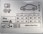 Aslında buradaki "i" sembolü (muhtemelen "info" kısaltması ve bilgi için kılavuza bakın anlamında) olan uyarı ve satır tamamen soğuk hava basıncı verisidir. Yukarıdaki termometre ve lastik , lastik soğuk ise basılacak değer anlamı taşır.