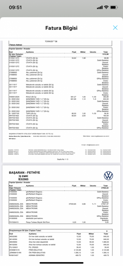 Tatil dönüşü yolda kaldım kart dediler sonuç 45k TL kodları vs lazım olursa diye 1.4 tsi 2013