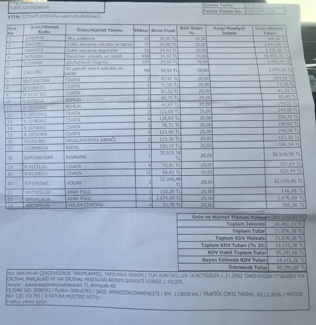 Çift kavramalı DSG içinse şimdiki zamanda, en fazla 35 hadi 40 bin TL olsun. Servise bu tarz şeyler için gidip böyle paralar ödemeyin. Yazık günah hepimiz bu ülkede zaten zor para kazanıyorken, ayı zor tamamlıyorken servislerin acıma yetime deyip böyle fahiş paralar vermesi tamamen art niyet.