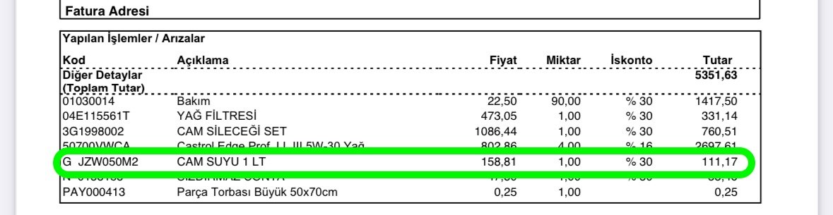 Faturayı bulmam lazım hocam bulursam ekleyeyim.Teşekkür ederim. Sadece parça kodları ve fiyat kısmını ekleme imkanınız var mı?